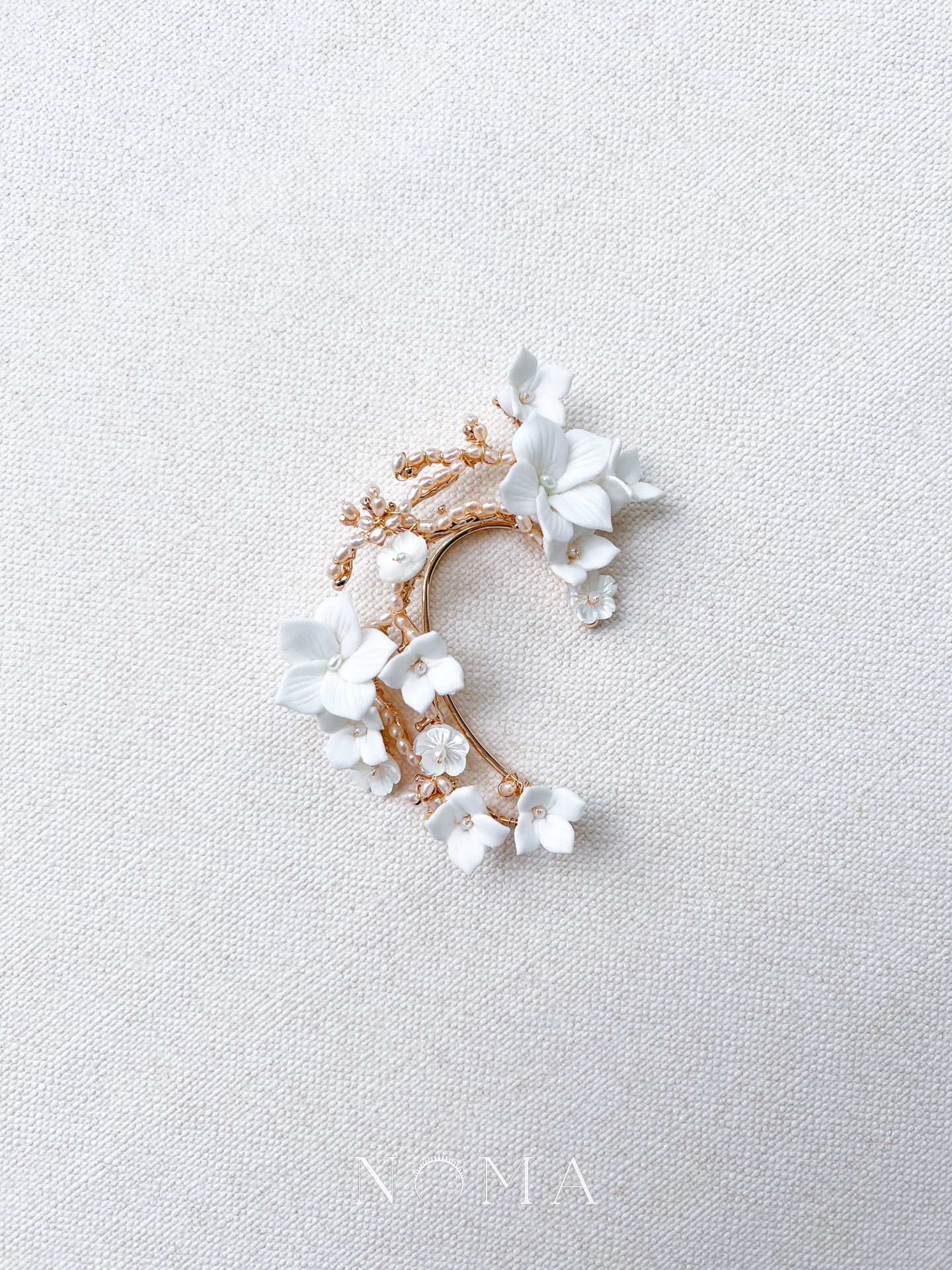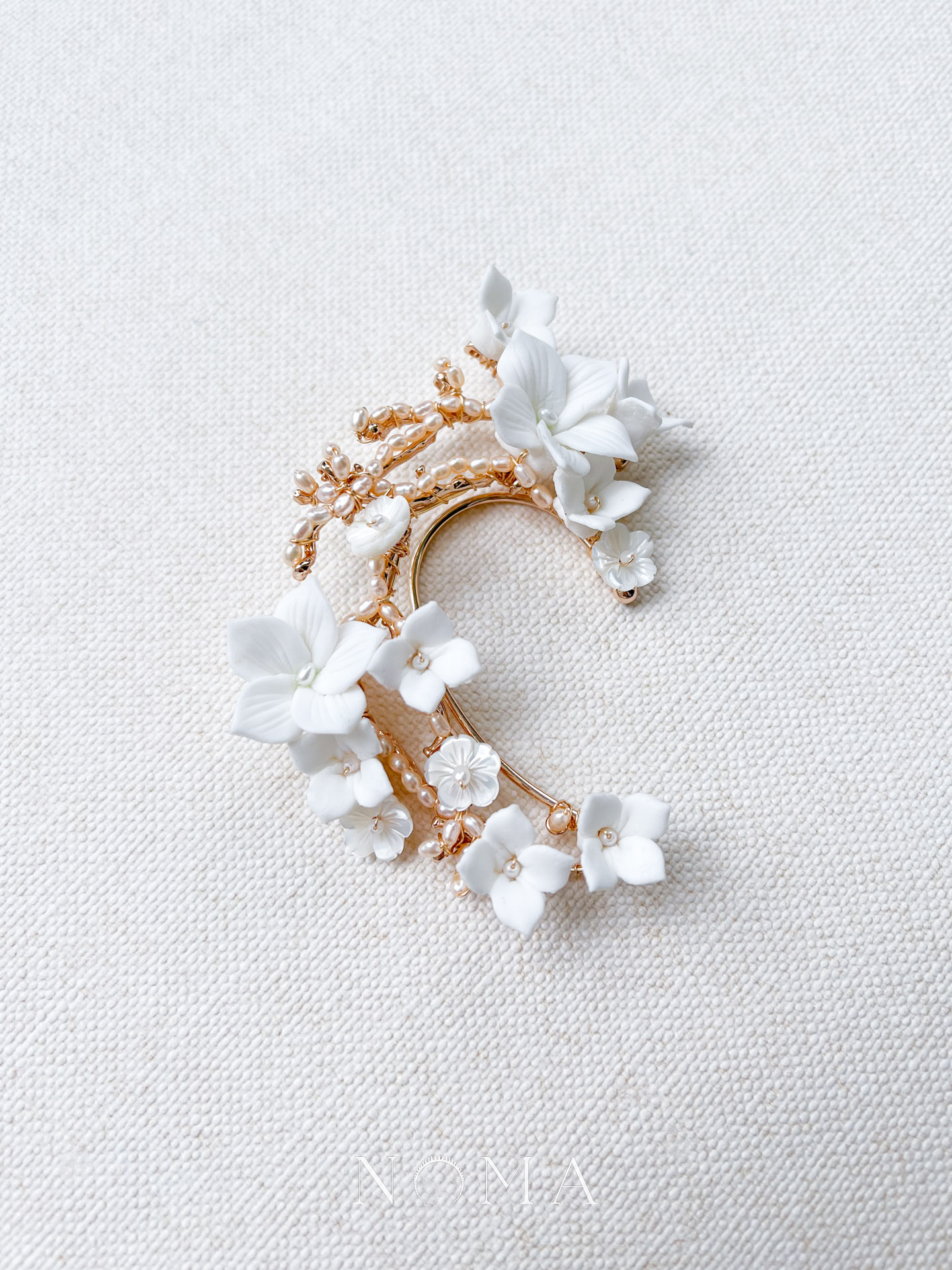 Clay Flower Pearl Branches Earpiece – Gold (Right)