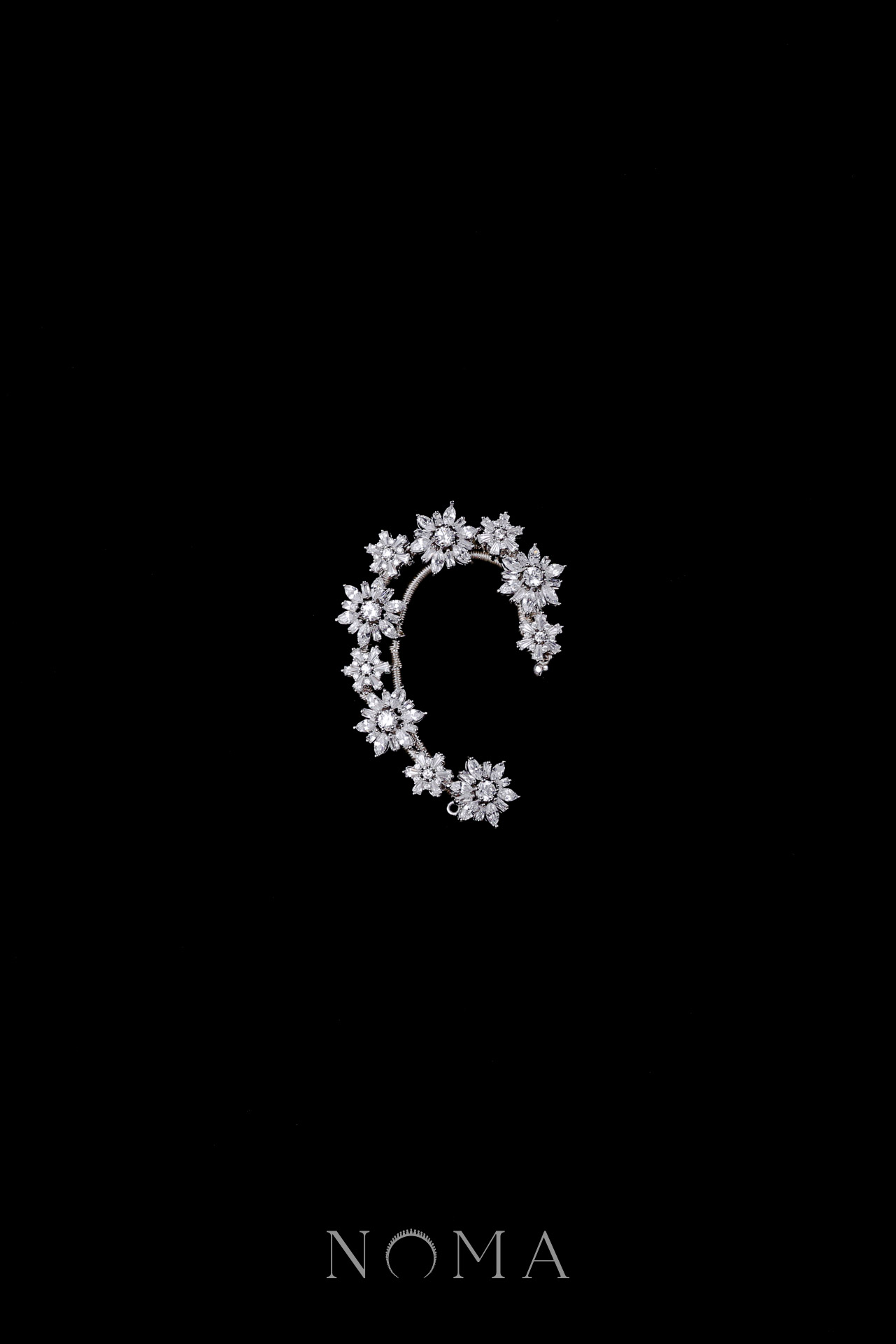 Flower Baguette Flakes Earpiece – White Gold (Right)