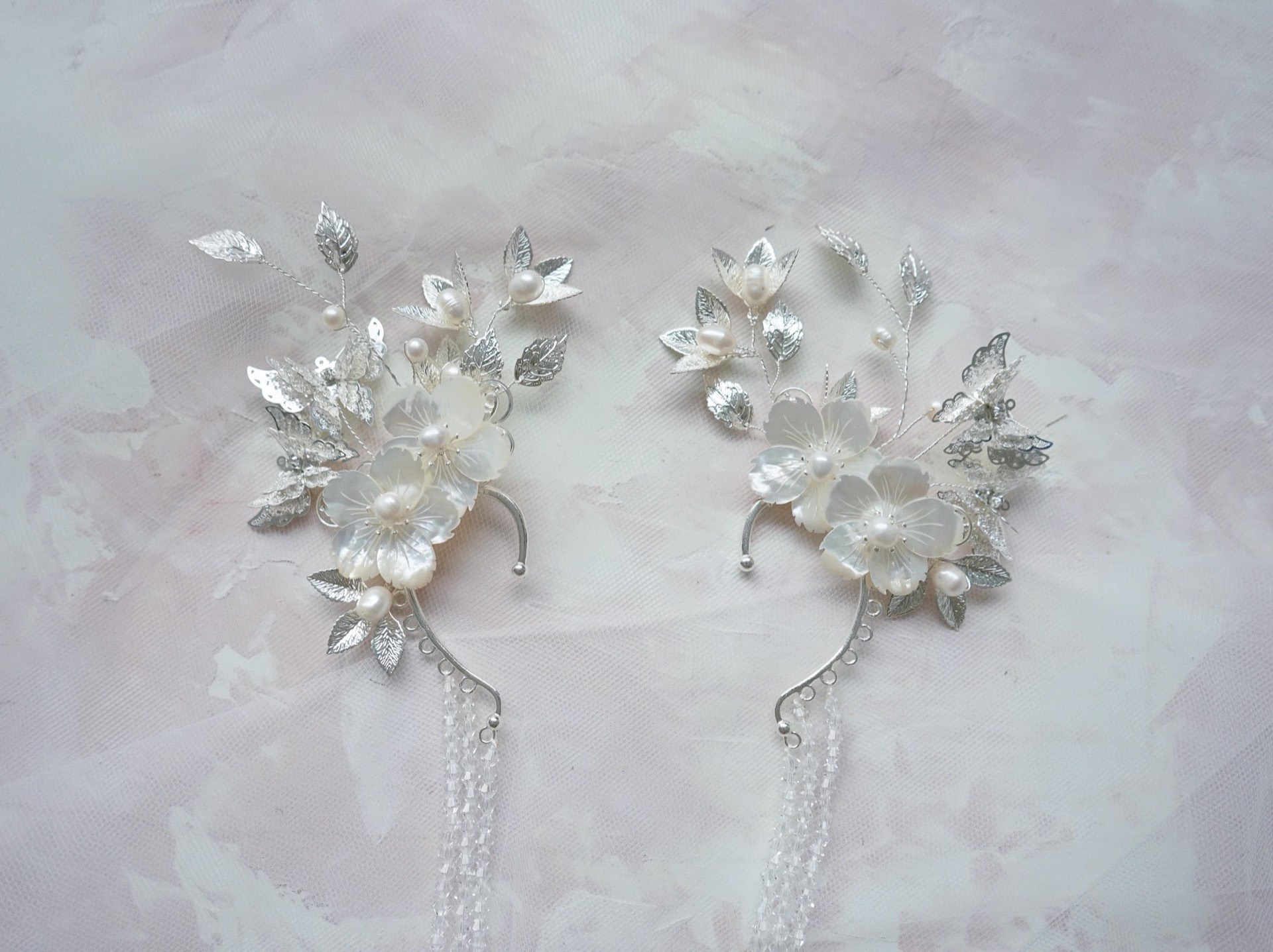 Winter Garden Earpiece – White Silver, White (Left)