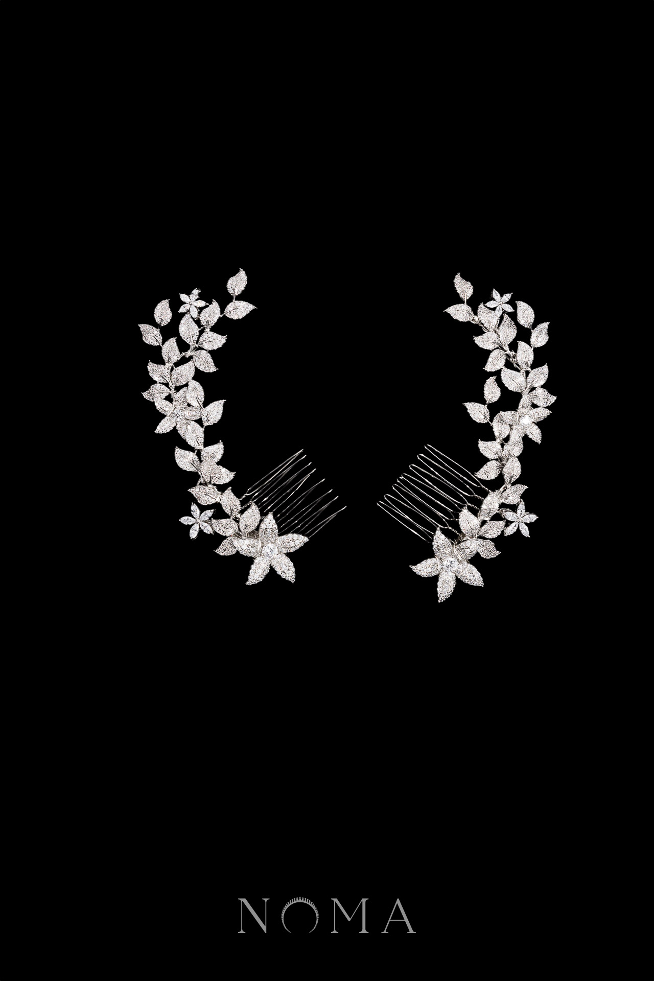 Paved Flower Twigs Side Hairvine Pair – White Gold (1 pair)