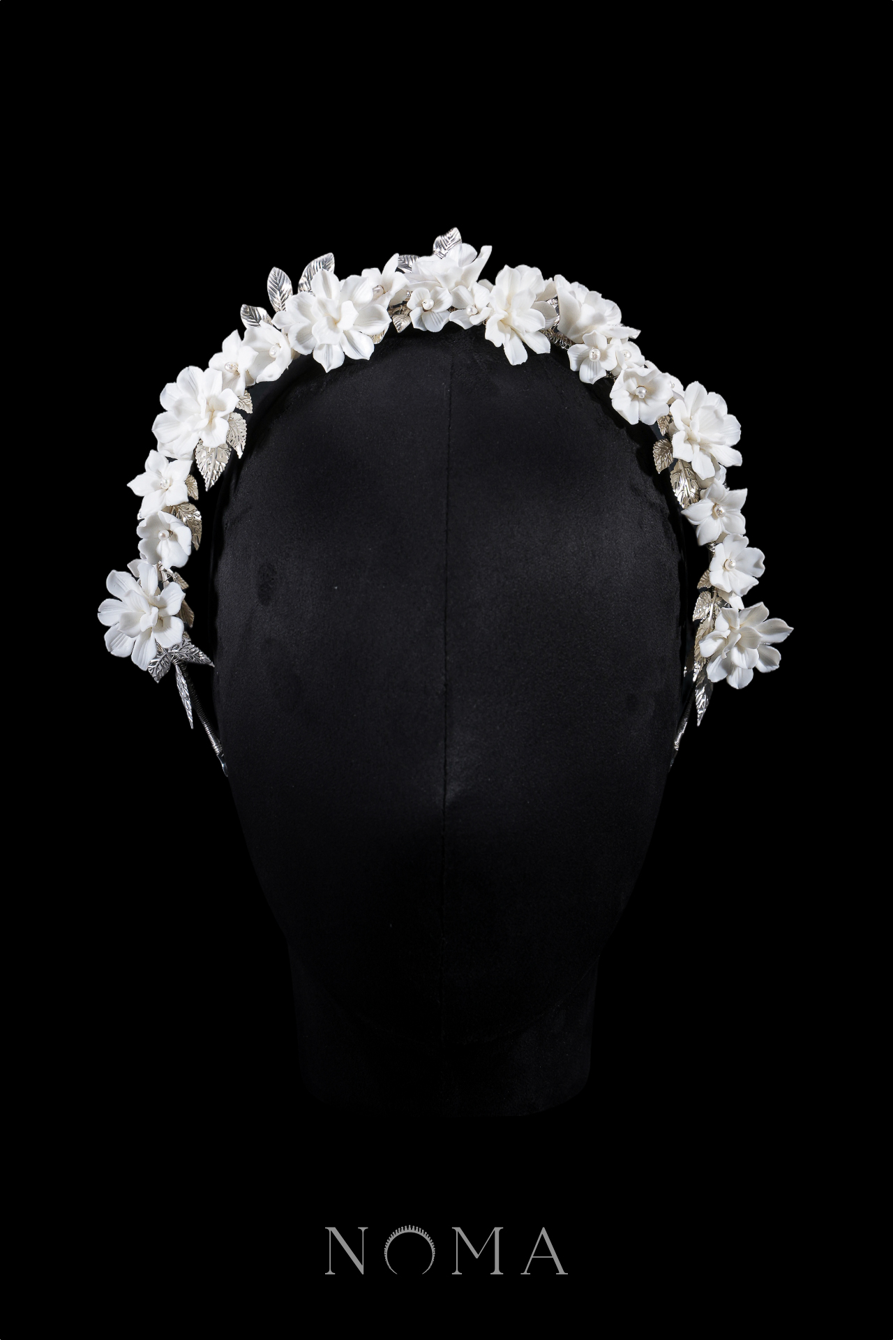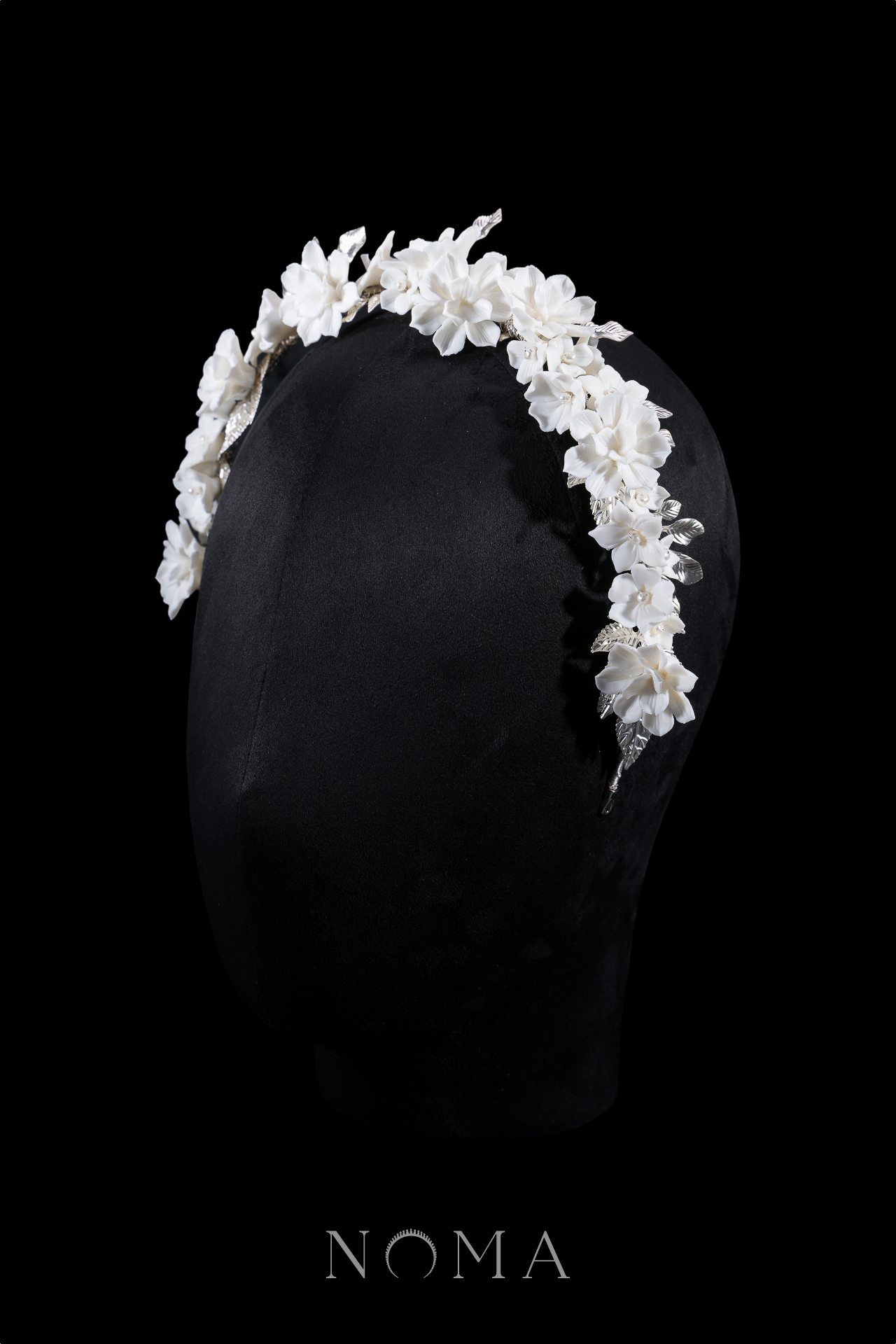 Clay Flower Lotus Mix Leaves Headband – White Silver