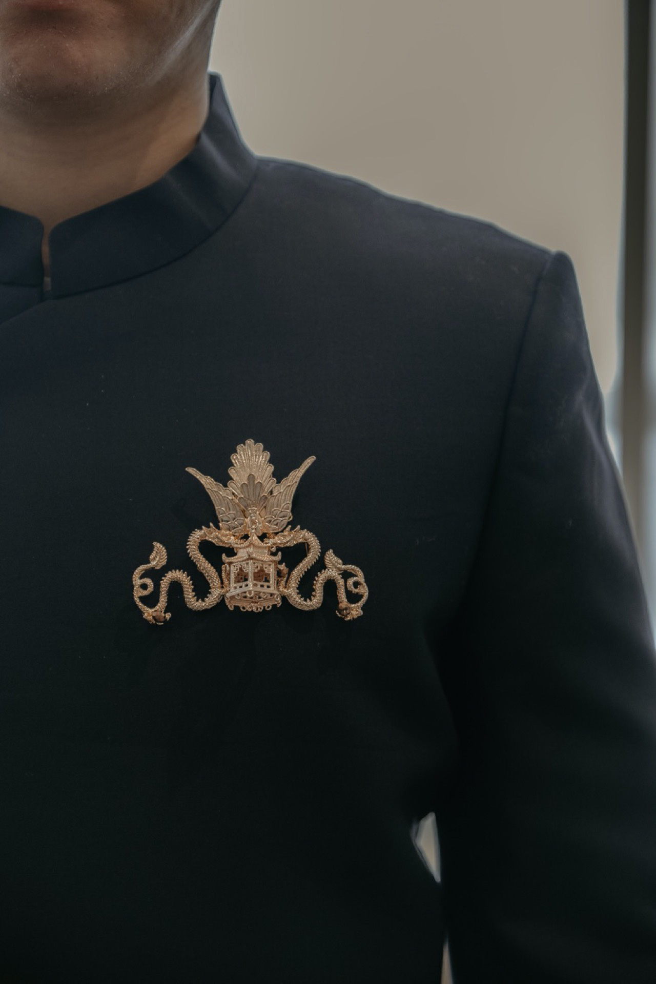Phoenix Dragon Pagoda Brooch – Gold, Bronze