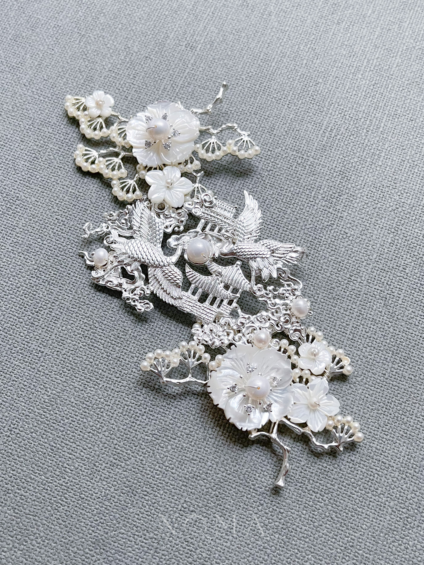 Twin Flying Crane Pavilion Brooch – Silver