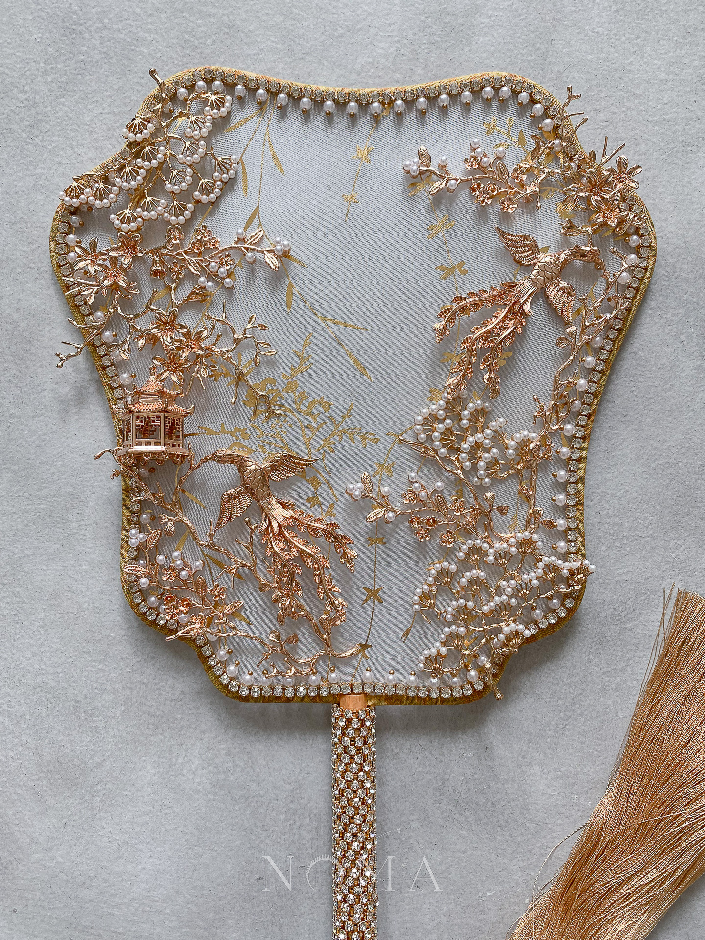 Phoenix Pearl Blossom Fan – Gold, Gold