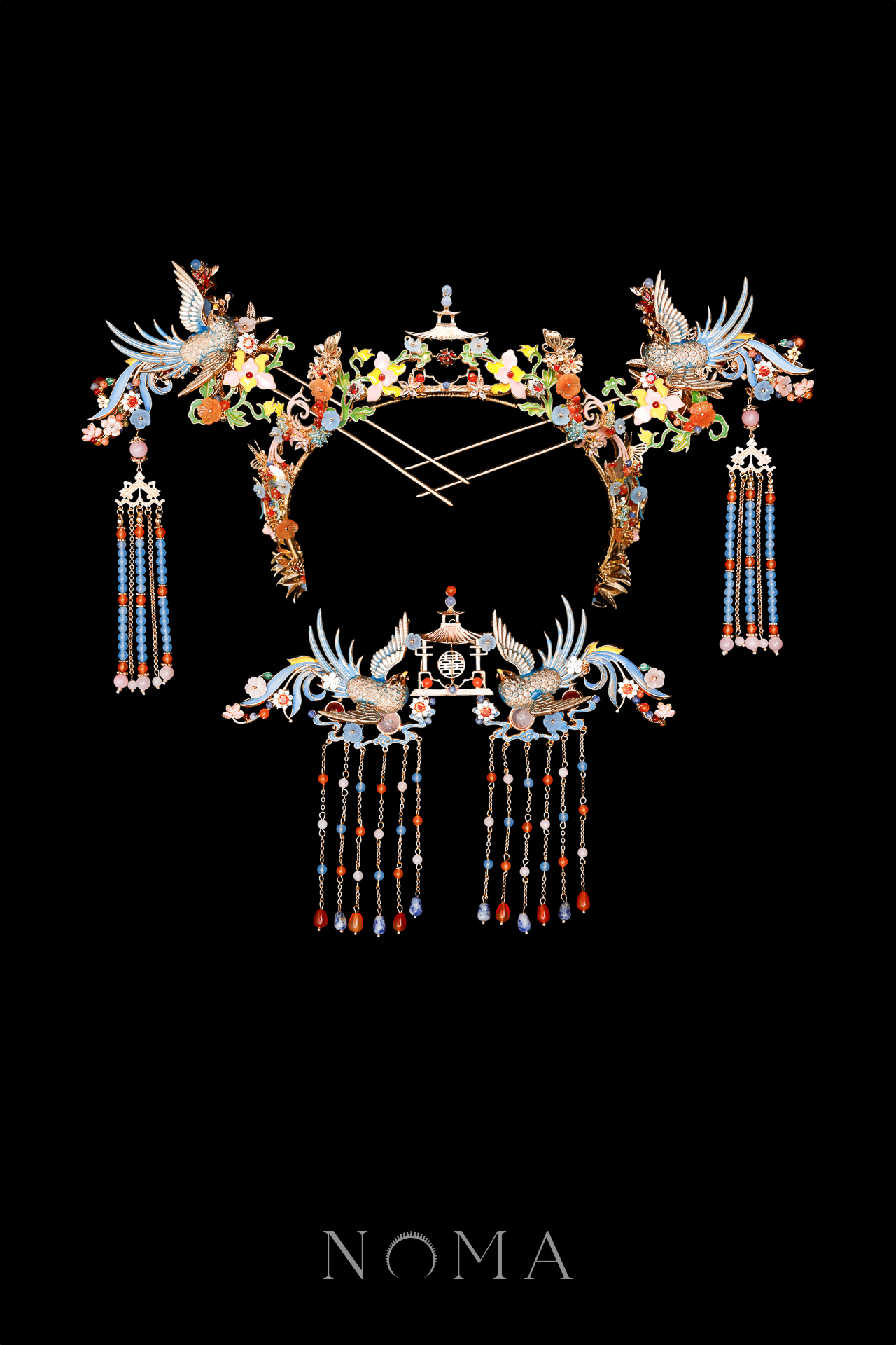 Colorful Swallow Pagoda Set – Gold, Blue (4 pcs)