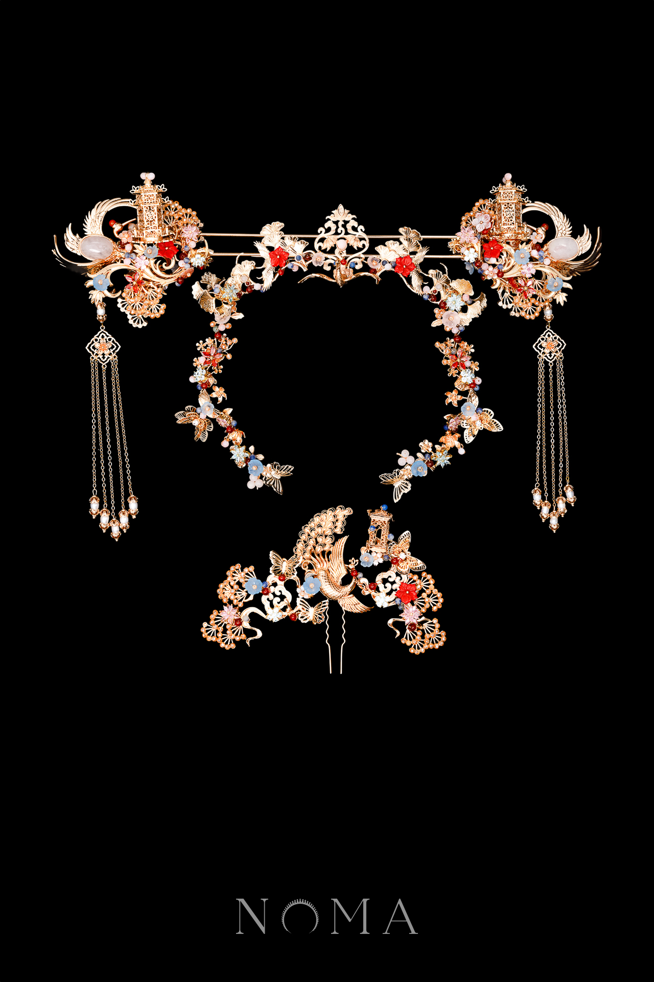 Harmonious Phoenix Pagoda Ornament Full Set – Gold, Ruby (4 pcs)