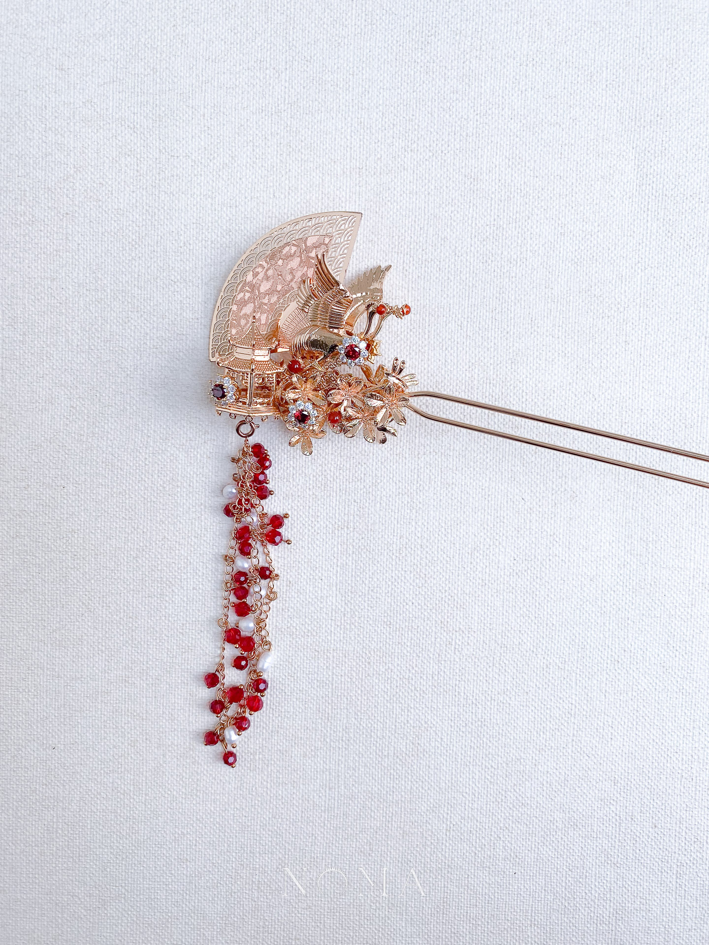 Flying Crane Bouquet Hairpin – Gold, Ruby (Right)