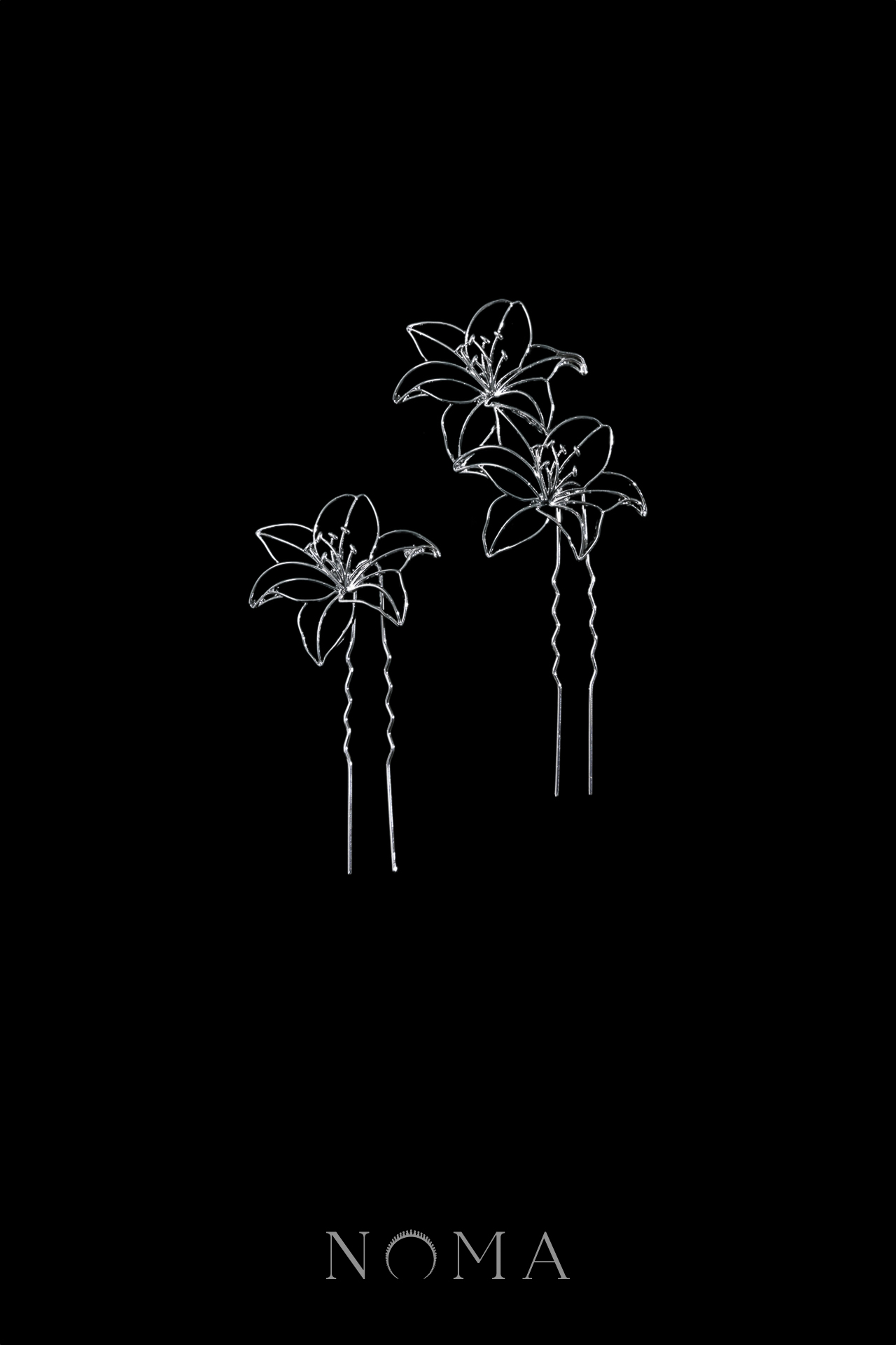 Silhouette Floral Hairpin Set – Rhodium White Gold (2 pcs)