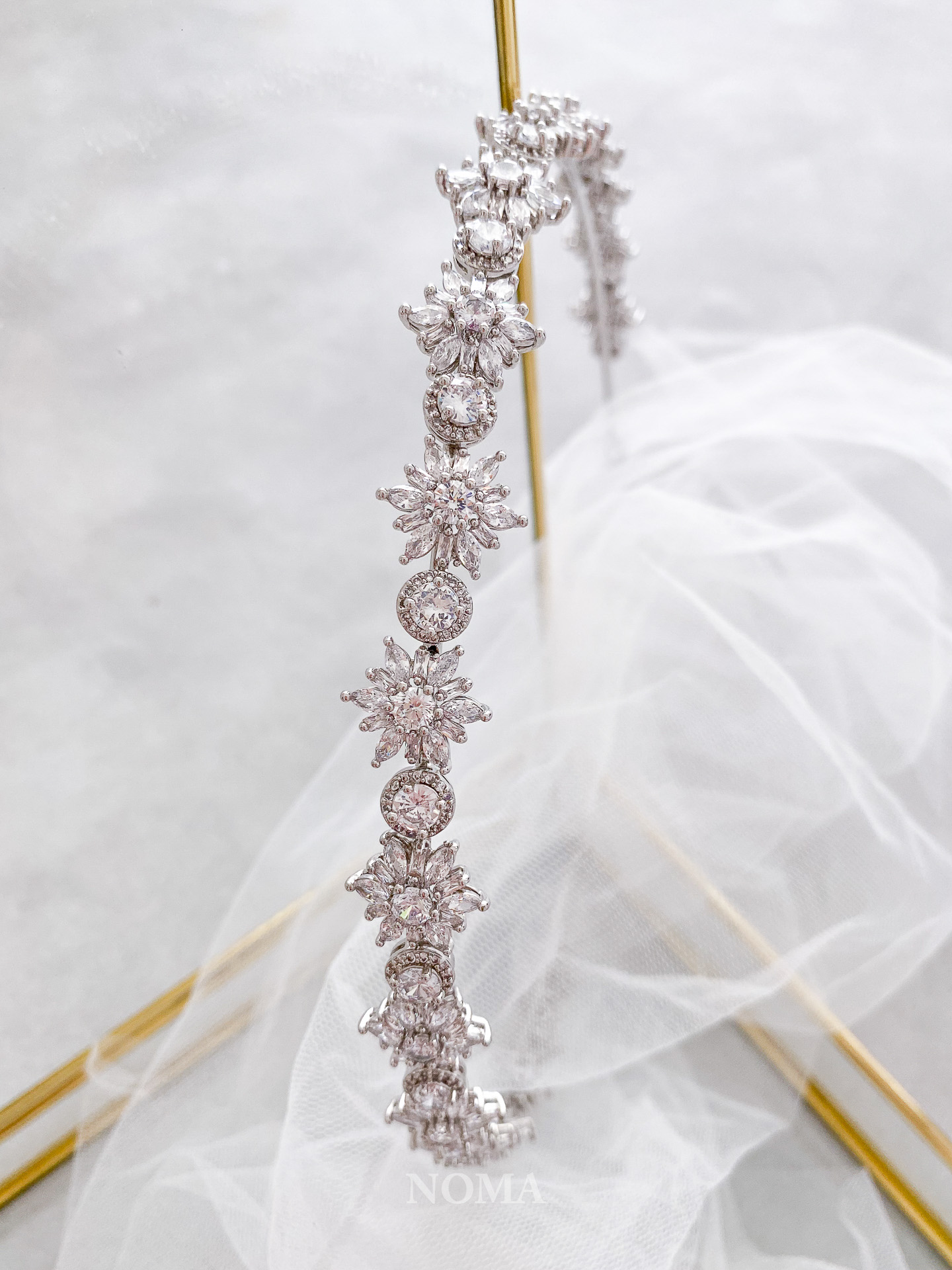 An alternative to wedding crowns for those who want a simple and sleek look without sacrificing luxury.