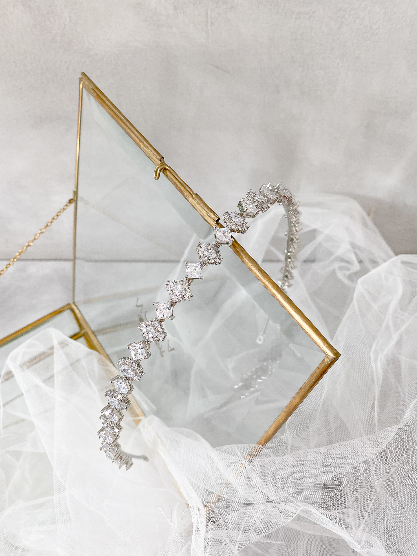 An alternative to wedding crowns for those who want a simple and sleek look without sacrificing luxury.
