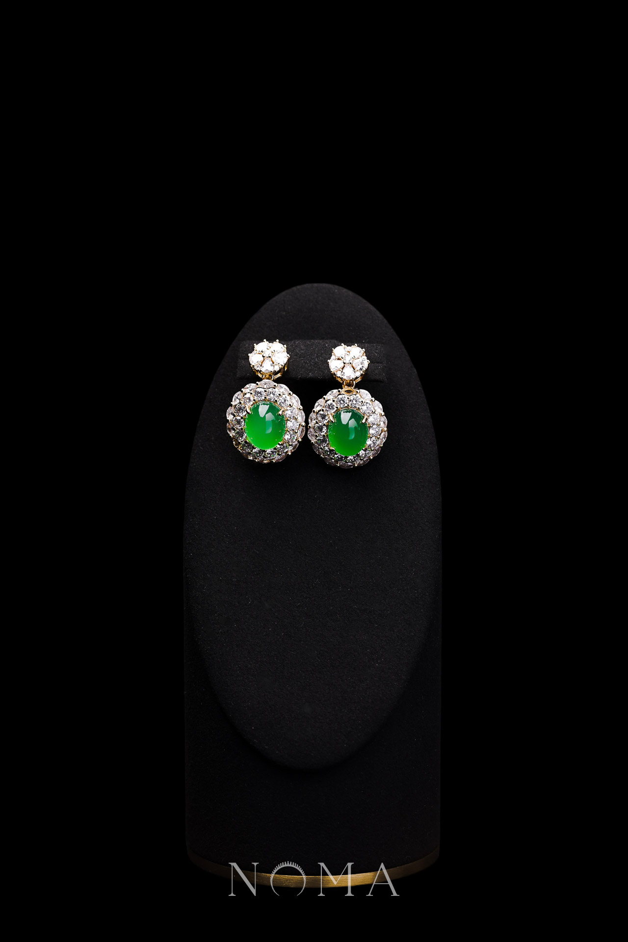 Superior Oval Jade Halo Large Floral Earrings – 18k Yellow Gold, Jade