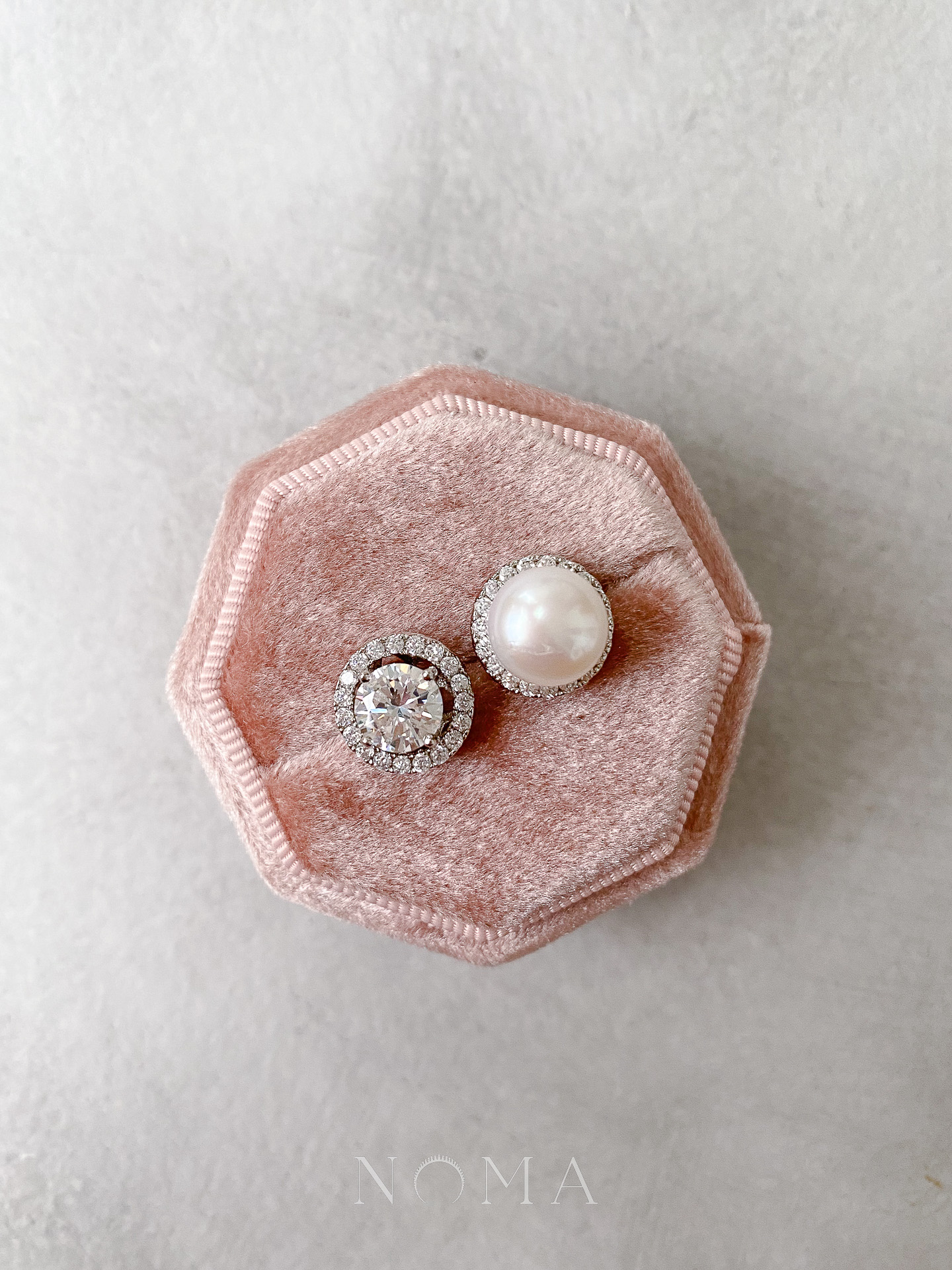 Pearl M & Round 1.5 ct Halo Detachable Earrings Special Set – Rhodium White Gold, White Pearl (6 pcs)