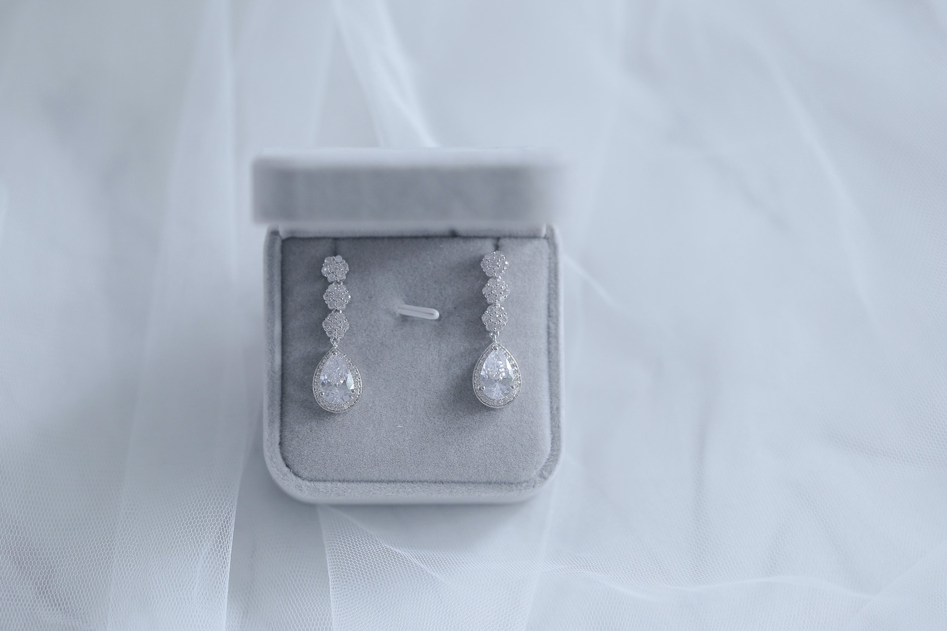 Pear Bouquet Earrings – Rhodium White Gold