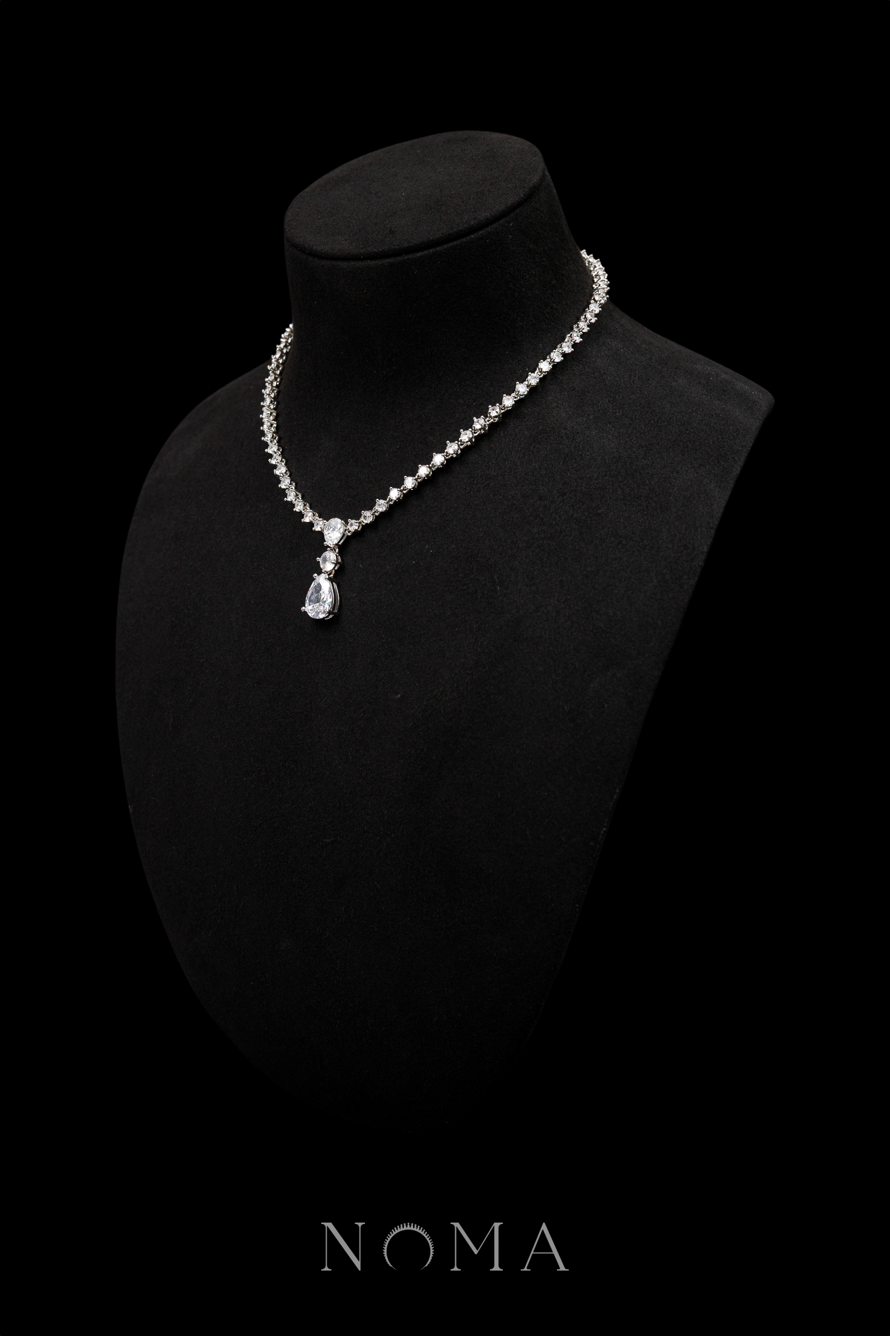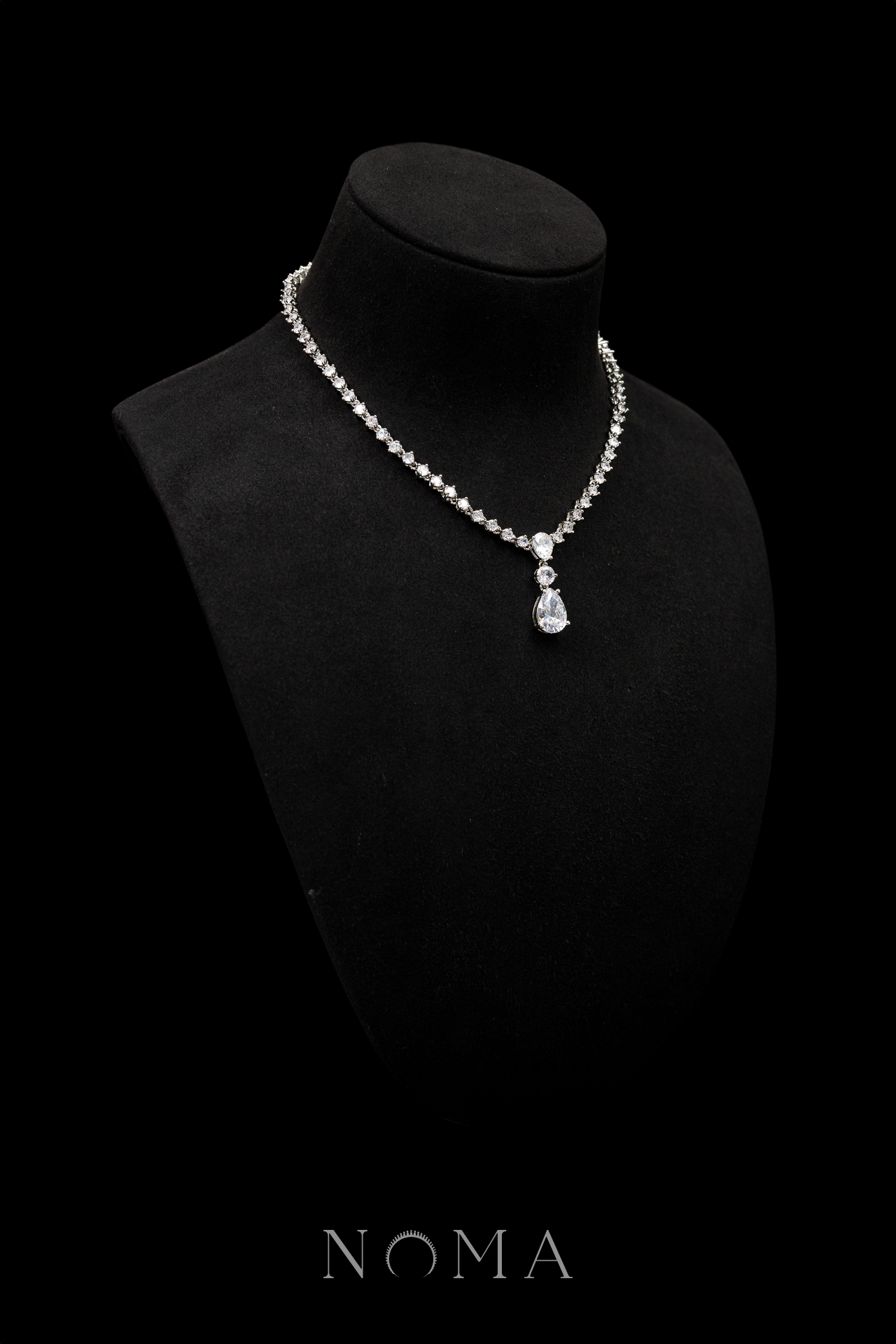 Pear on Pear Necklace – Rhodium White Gold, White Diamond